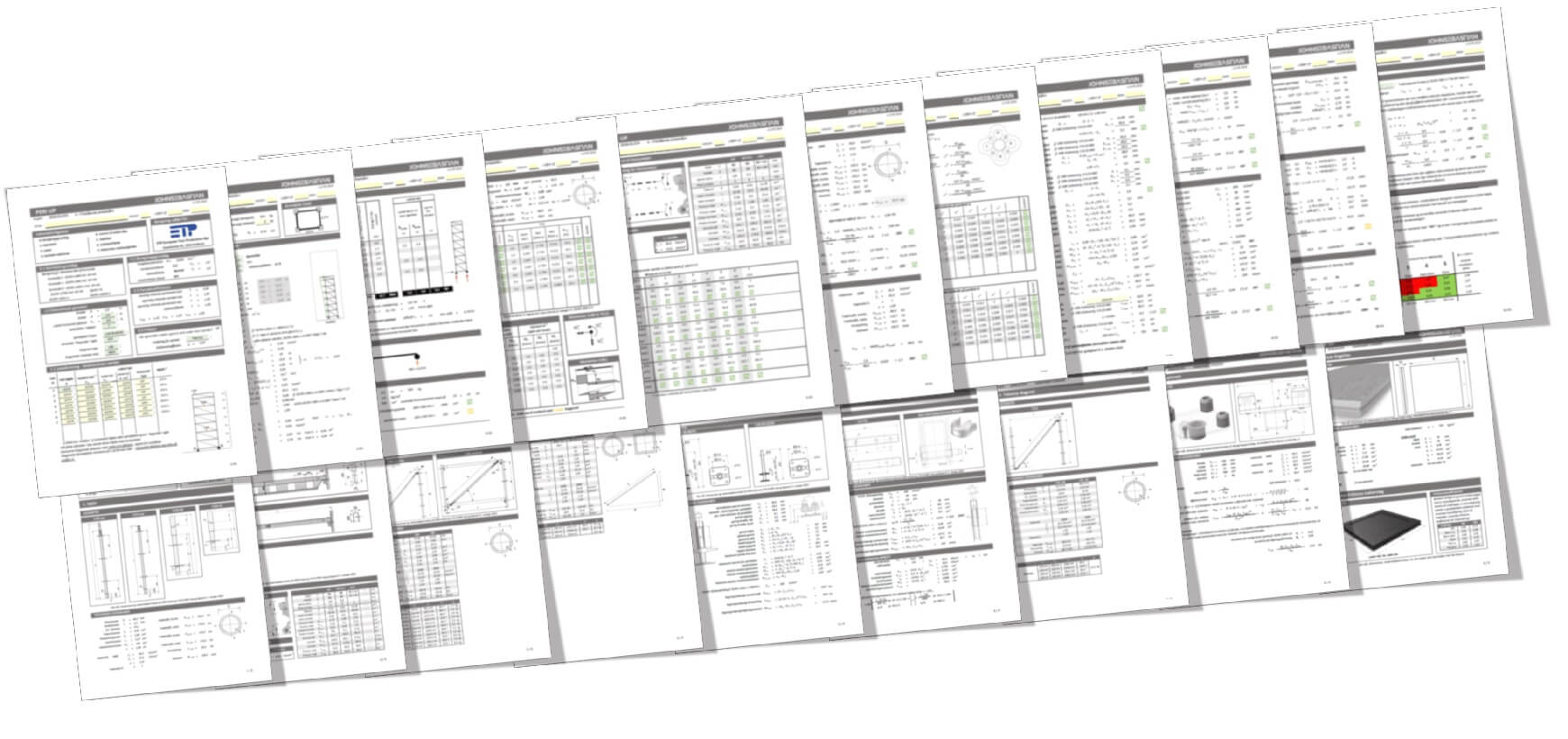 Providing each input with both data validation and a short guide (ill. in the screenshot to the right), increases the quality of the input of parameters like dimensions, applied loads, terrain class, type of ledgers and diagonals, etc. used for the calculation and verification of required ballast, the performance of the chosen diagonal pattern and not least a detailed check of the linear performance of each type of component for the specific setup, by comparing it to the metrics of the manufactures "DIBt Zullassung" (German building product approval). An overview of a complete report is shown below.